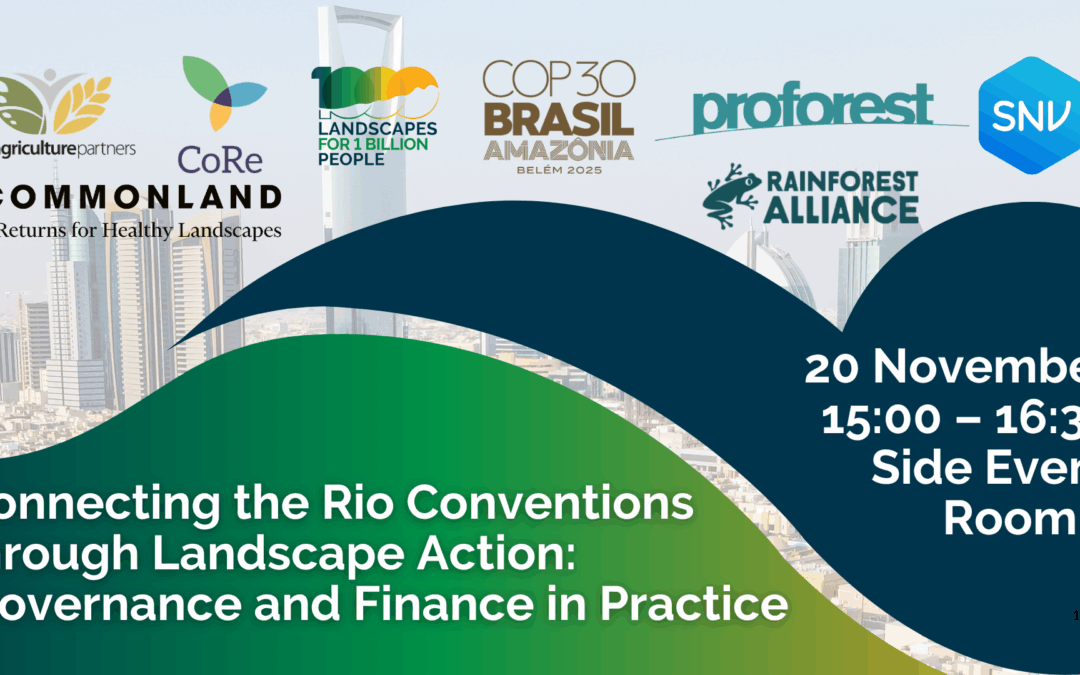 Integrated governance and landscape finance are powerful levers for territorial transformation, enabling more effective ecosystem restoration and management, enhanced climate resilience, greater food and water security, secure livelihoods for people, and climate-positive economic and social development. By promoting synergies across these areas, this approach helps align national policies with local realities, bridging gaps between sectors, stakeholders, and scales. Building on 1000L’s global experience, the event will showcase cases where collaborative approaches and practical tools have promoted policy coherence, while addressing the interconnected challenges of land use, livelihoods, and natural resources systems.